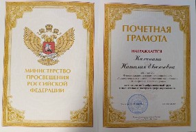 МИНИСТЕРСТВО ПРОСВЕЩЕНИЯ РОССИЙСКОЙ ФЕДЕРАЦИИ - ПОЧЕТНАЯ ГРАМОТА 2023 г.
